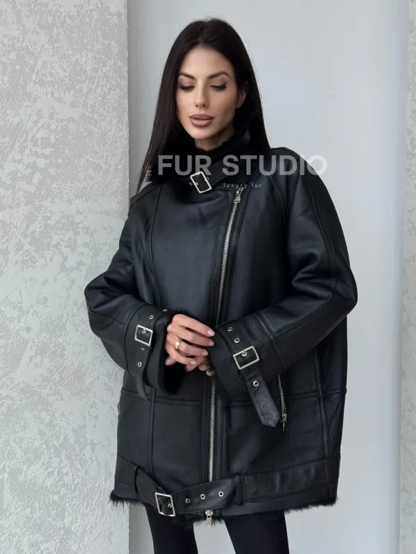Черная дубленка - авиатор на тоскане 100757