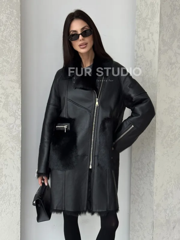 Черная дубленка на тоскане 100740