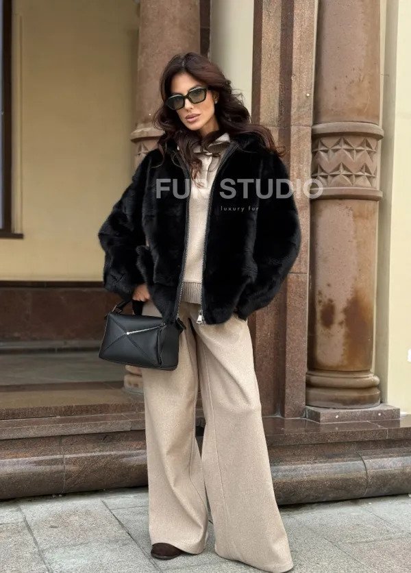 Черная норковая шуба с капюшоном доступна для покупки в нашем магазине Furs Studio в , с возможностью доставки в любой город России. Добавьте немного стиля и элегантности в свой гардероб с этой курткой, которая будет вам служить многие годы, подчеркивая ваш неповторимый стиль.