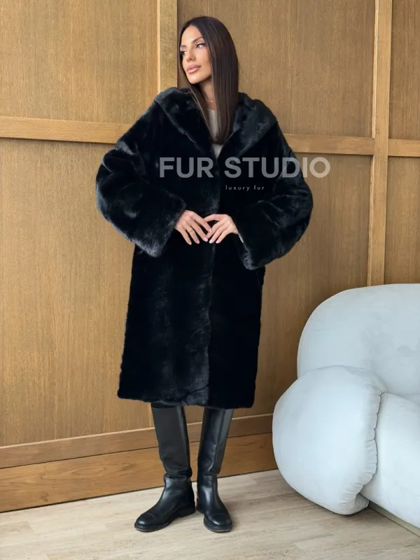 Черная норковая шуба с капюшоном 102765