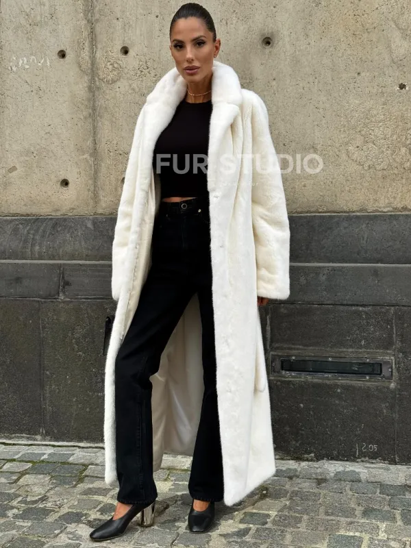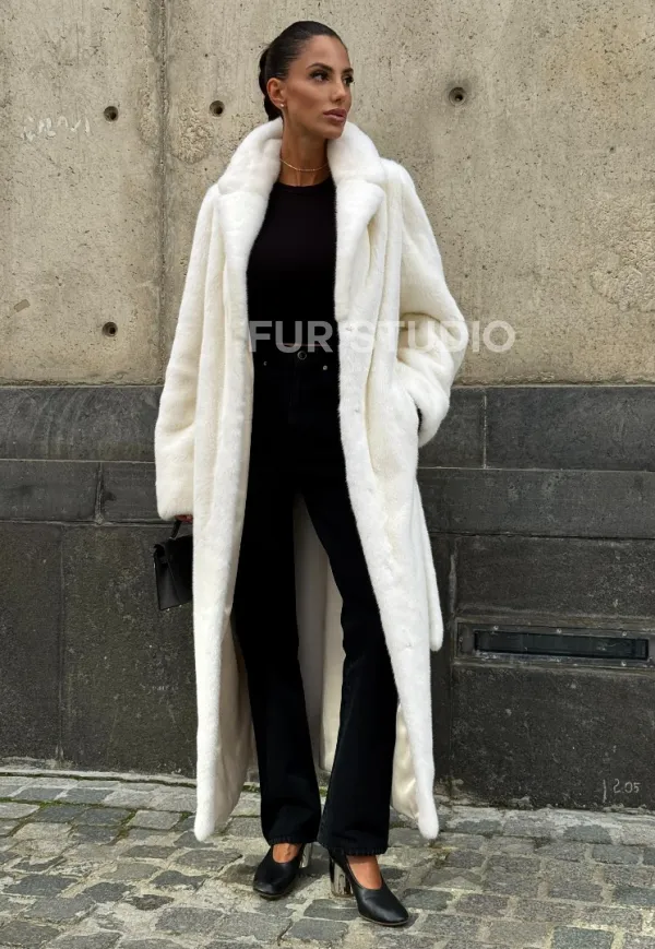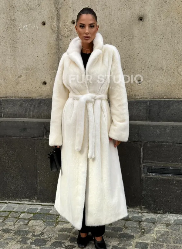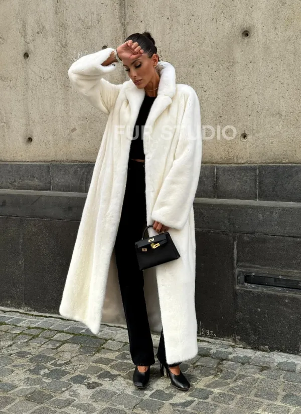 Длинная белая норковая шуба 102111