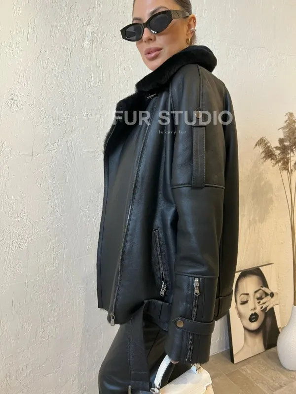 Дубленка авиатор в черном цвете из натуральной овчины - выбор стильных и уверенных женщин. Авиатор модель, которая будет к лицу дамам любого возраста. Теплая овчина согреет в прохладное время года. Кожа приятна на ощупь и неприхотлива в уходе. Материал высокого качества. Стильные заклепки и декоративные фермуары создают дерзкий и немного грубый образ.