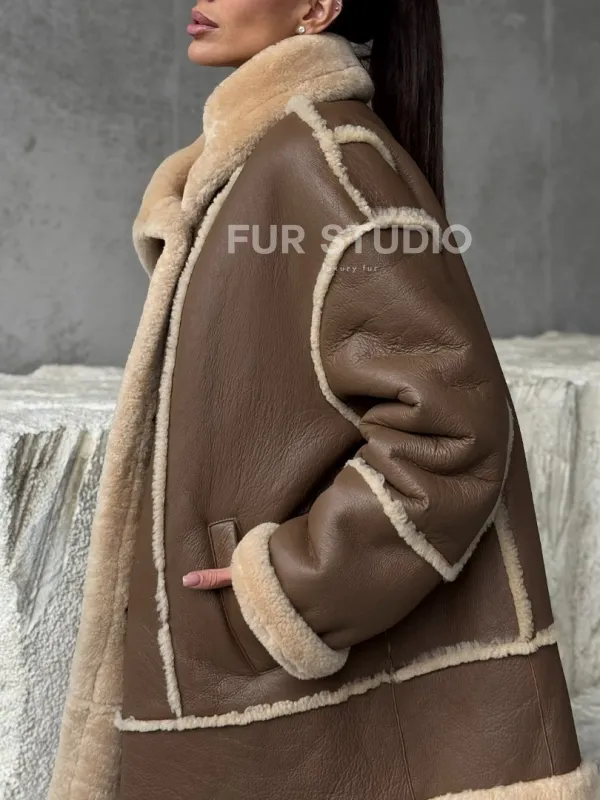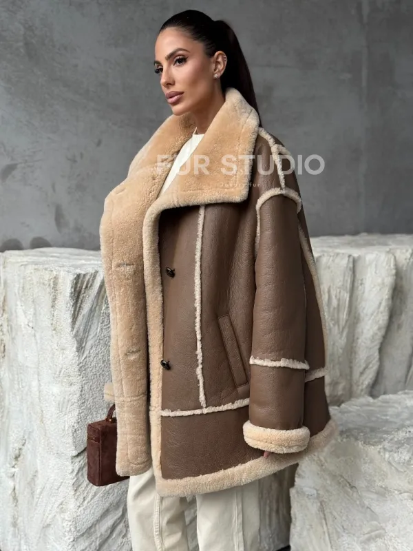 Коричневая женская дубленка 102393
