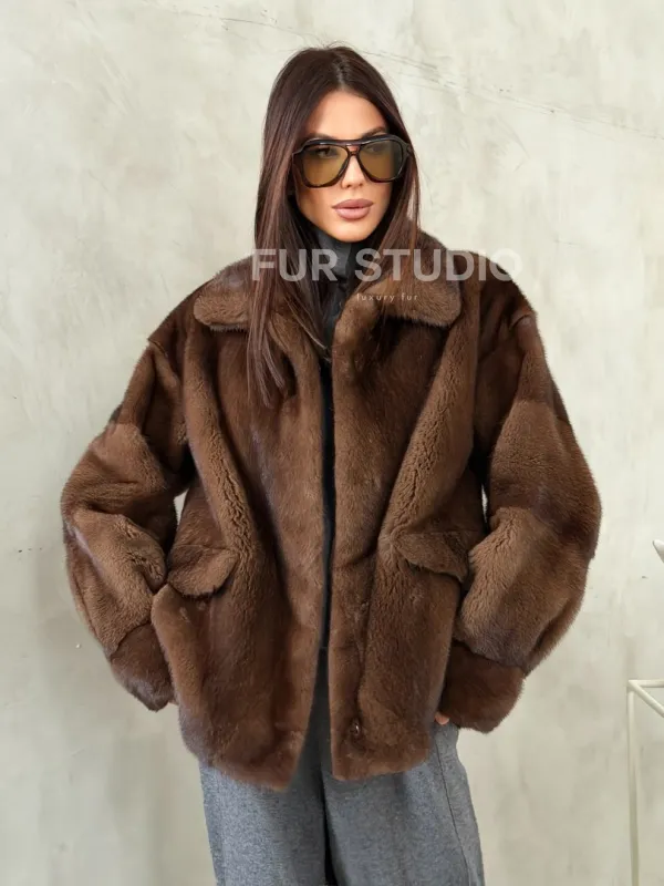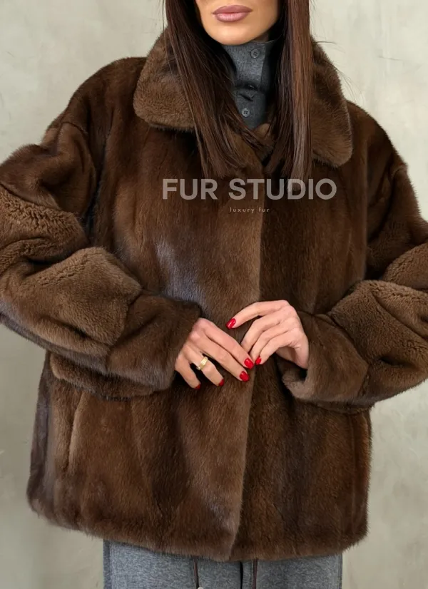 Короткая норковая шуба под соболь 102776