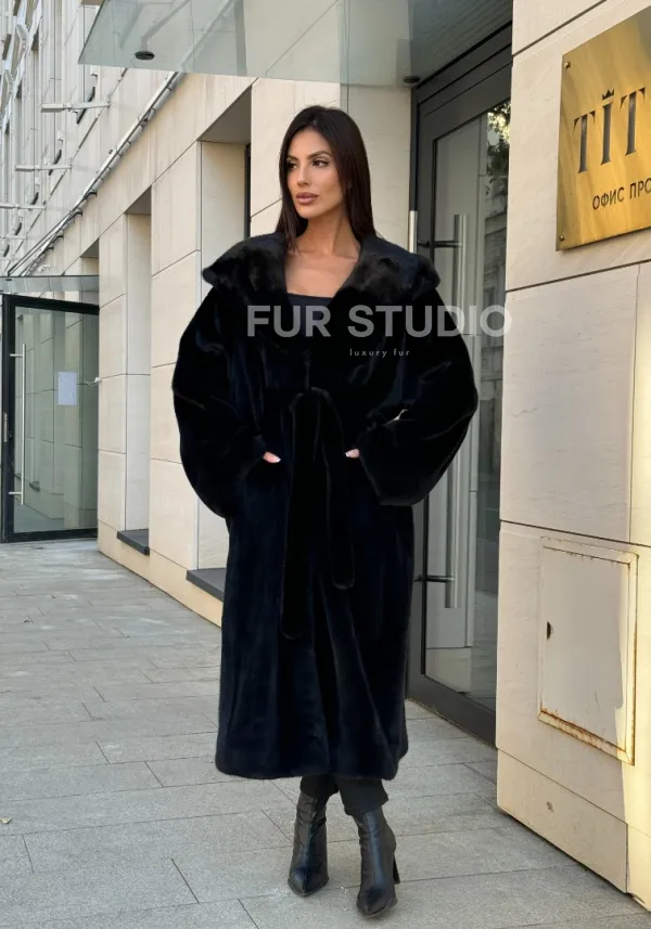 Норка кимоно BLACKGLAMA роспуск, капюшон кобра 101144