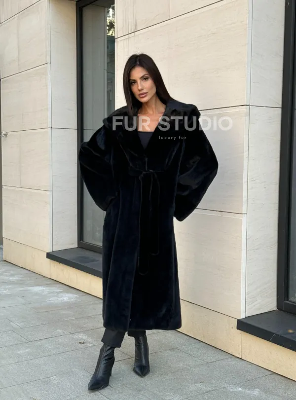 Мех данной шубы норка Blackglama , цвет черный. Предлагается в размерах от 42 до 52. Длина модели 120-125 см, что выгодно подчеркивает фигуру девушек. Эта модель идеально подойдет для девушек и женщин, предпочитающих роскошные натуральные меха.