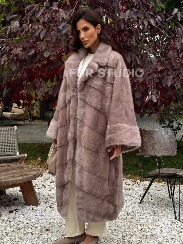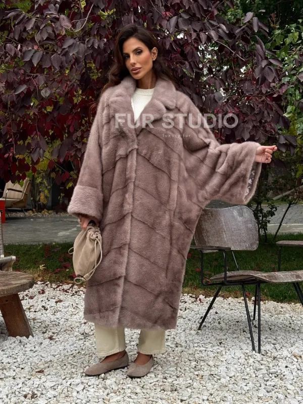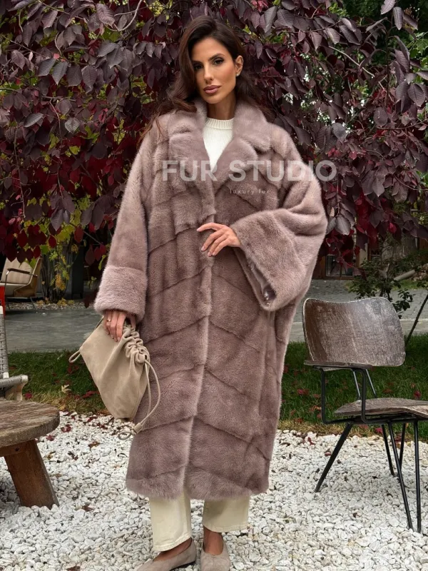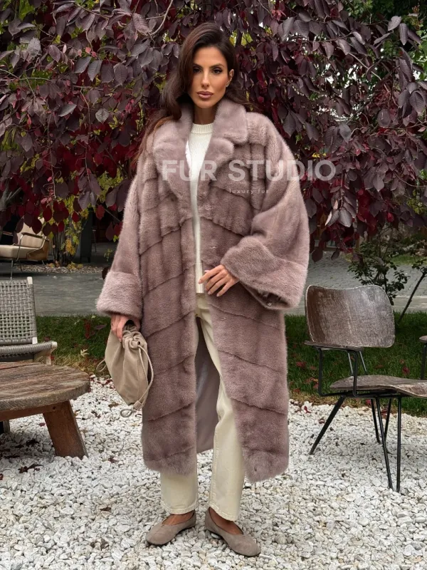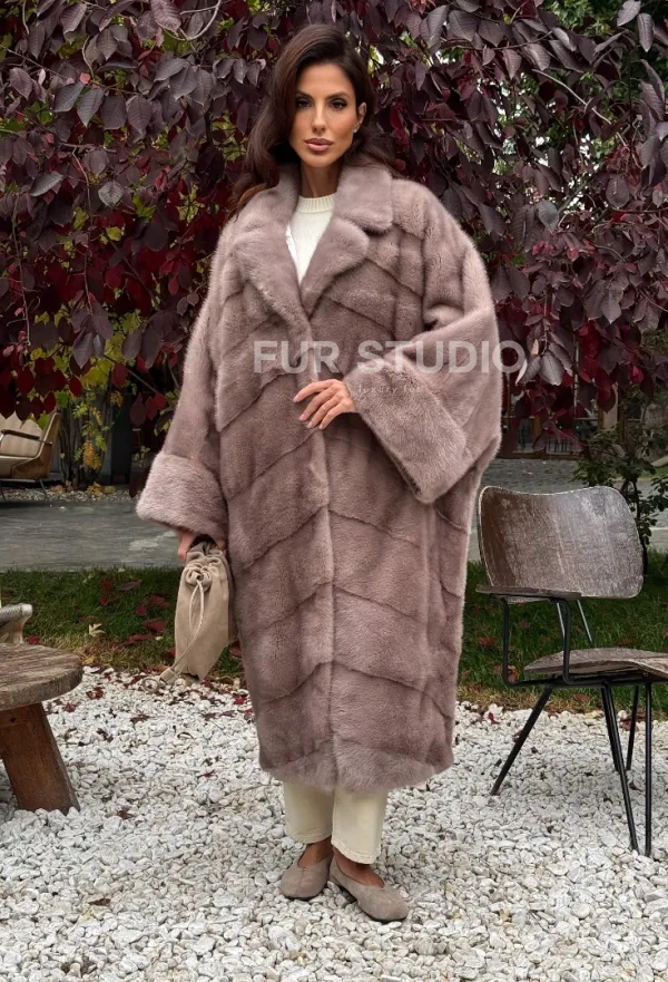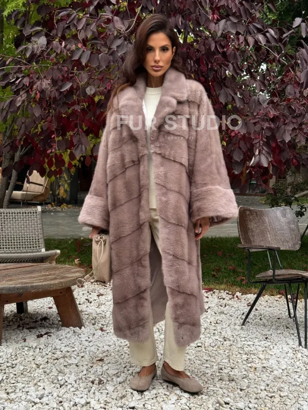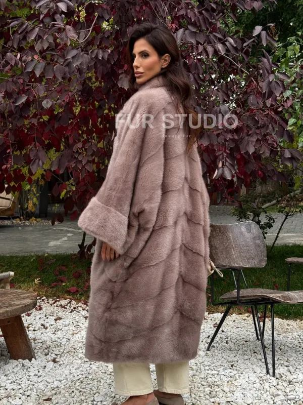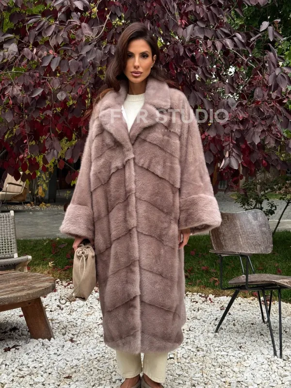 Мех данной шубы аукционная норка , цвет розовый. Предлагается в размерах от oversize (42 до 68). Длина модели 115-120 см, что выгодно подчеркивает фигуру девушек. Эта модель идеально подойдет для девушек и женщин, предпочитающих роскошные натуральные меха.