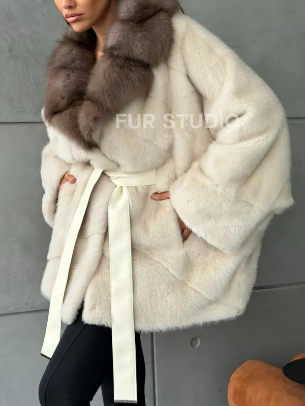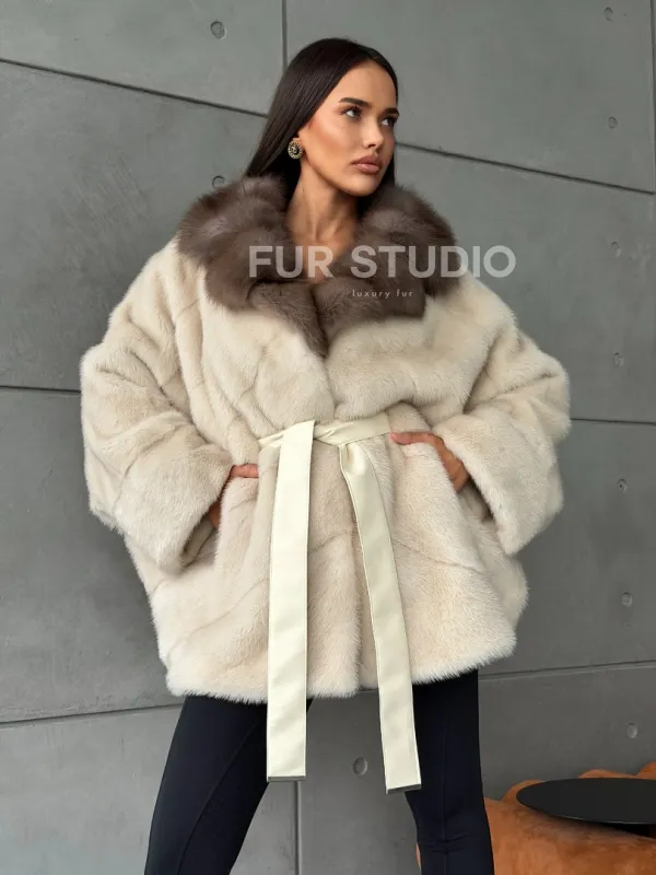 Норковая шуба - куртка с мехом куницы 102793