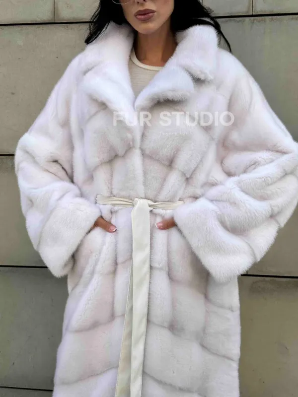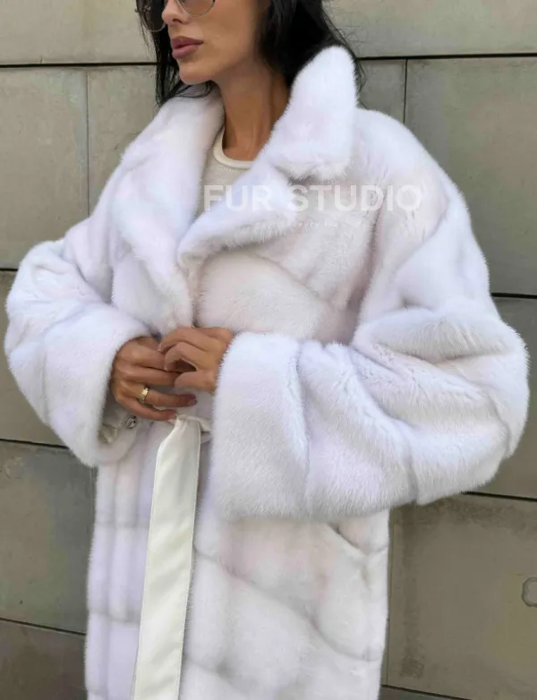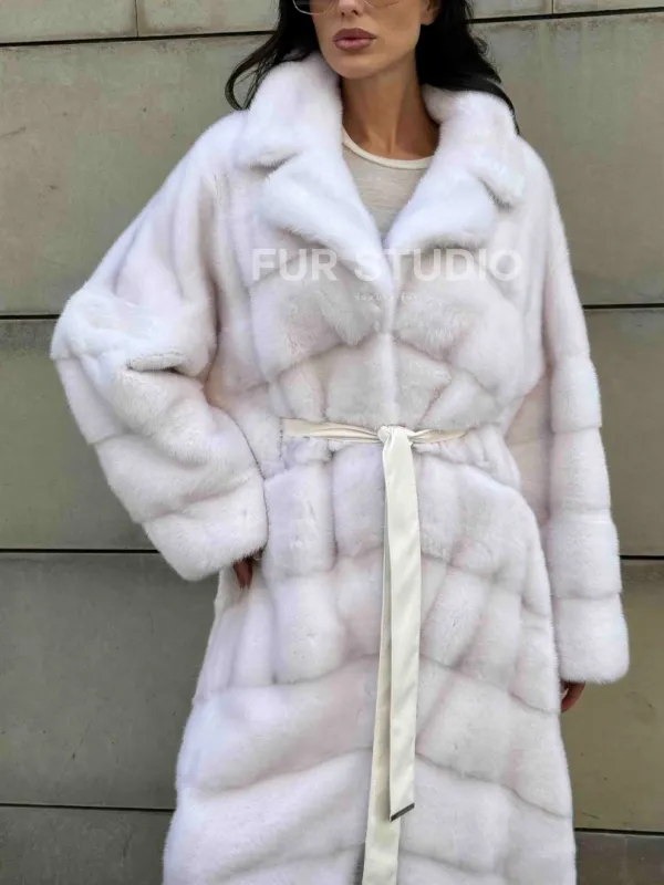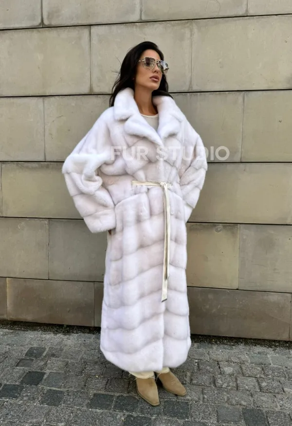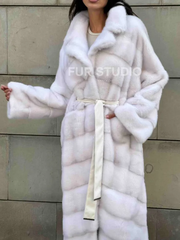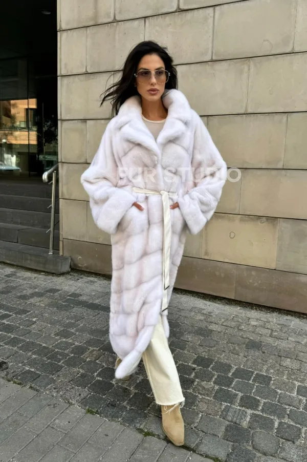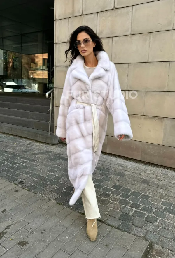 Норковая шуба с английским воротником - цвет колотый лед 101014