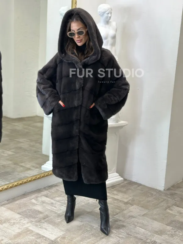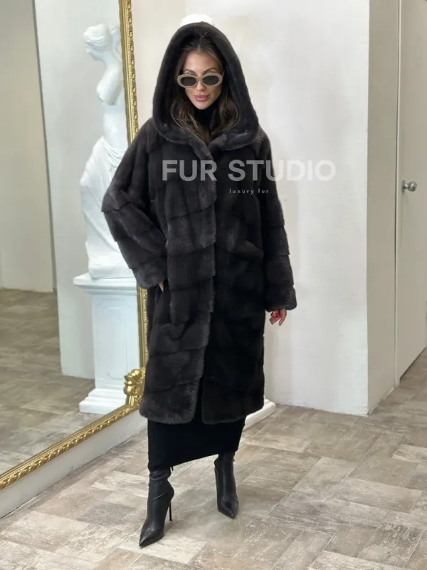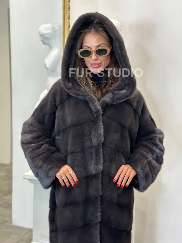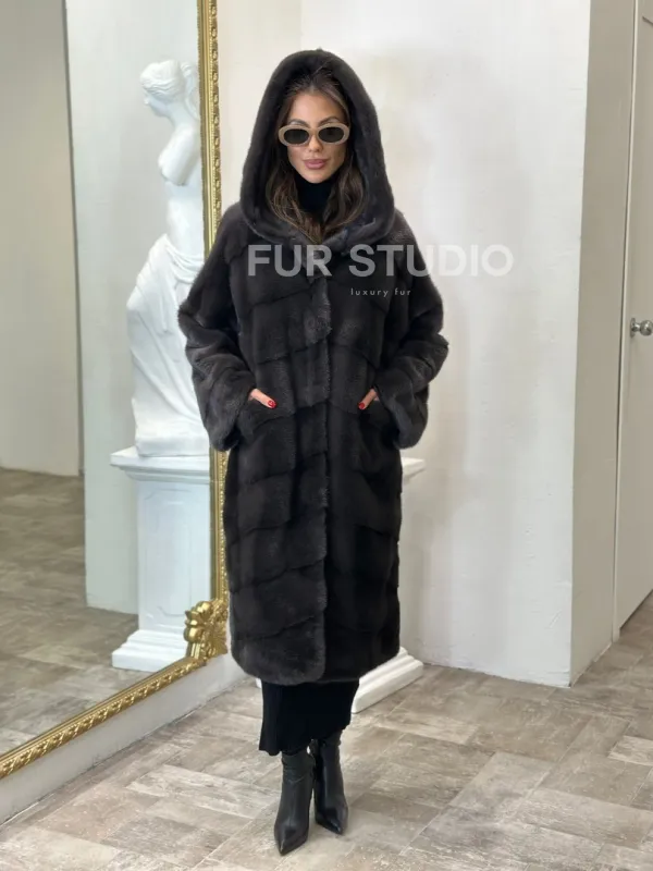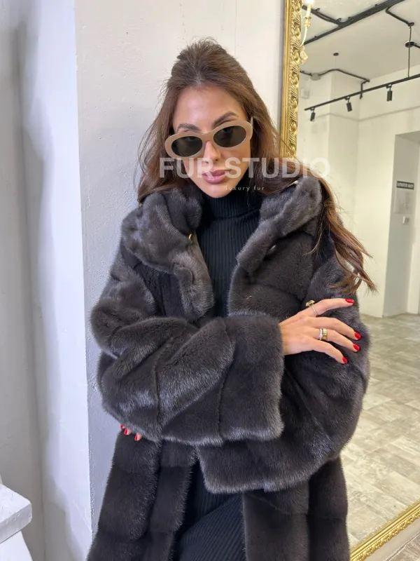 Норковая шуба в цвете графитовый уголь с капюшоном доступна для покупки в нашем шоуруме Furs Studio в . У нас так же есть доставка во все города России. Добавьте немного роскоши в свой гардероб с этой шубой, которая будет служить вам многие годы.