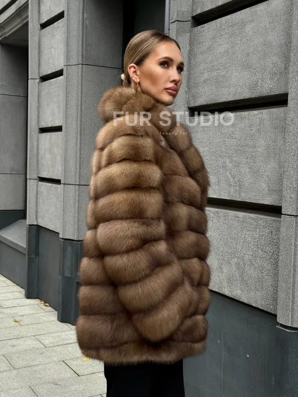 Мех данной шубы лесная куница, цвет натуральный. Предлагается в размерах от 42 до 44 с ( 46. Длина модели 75-80 см, что выгодно подчеркивает фигуру девушек. Эта модель идеально подойдет для девушек и женщин, предпочитающих роскошные натуральные меха.