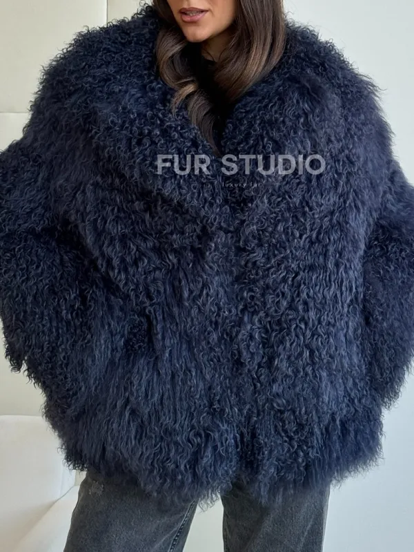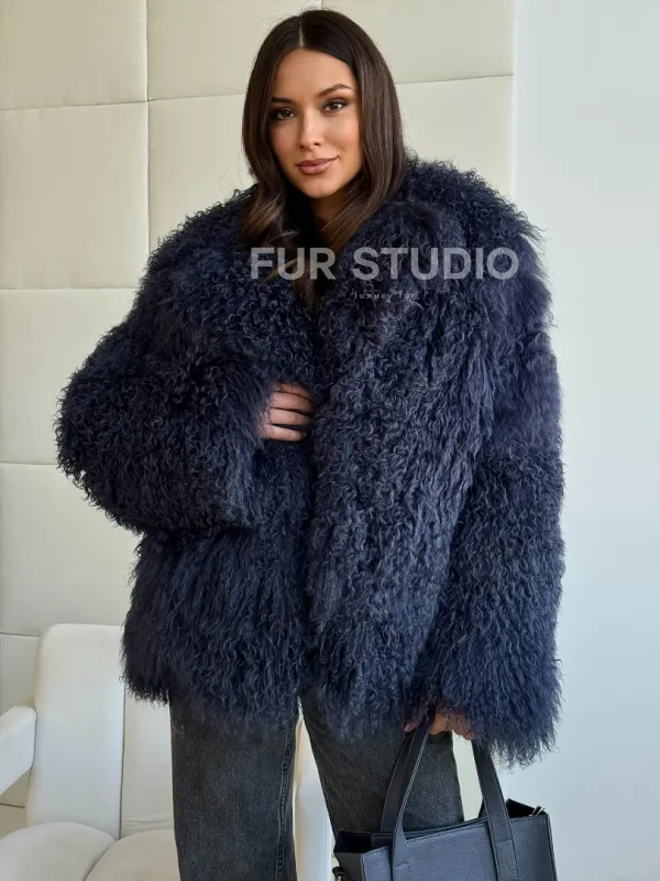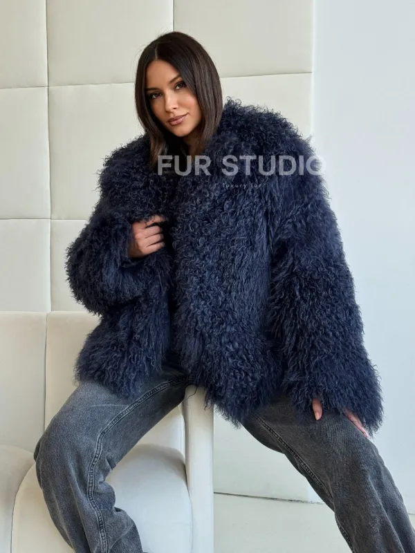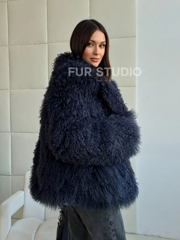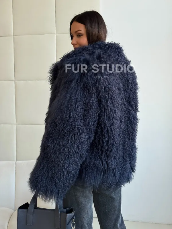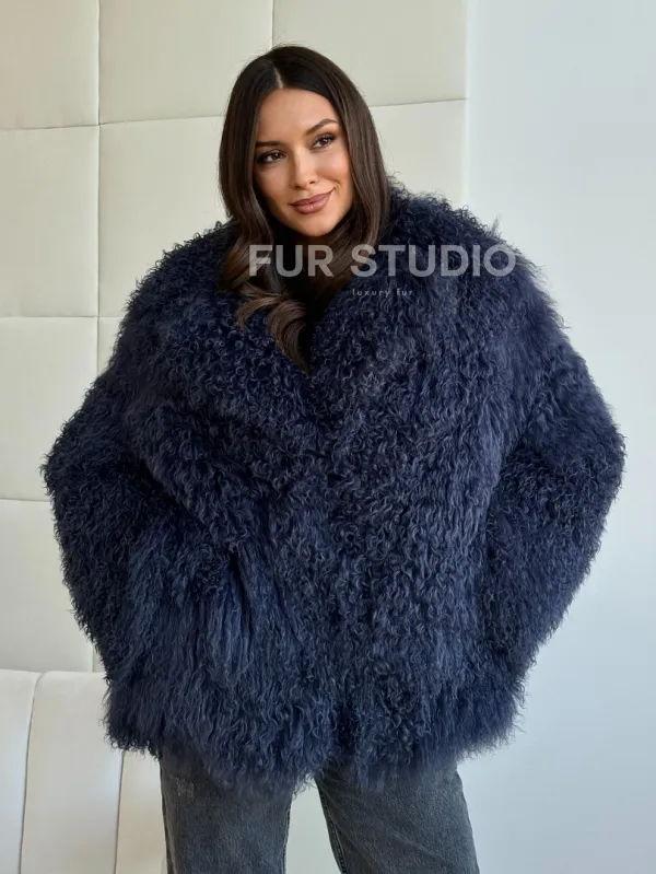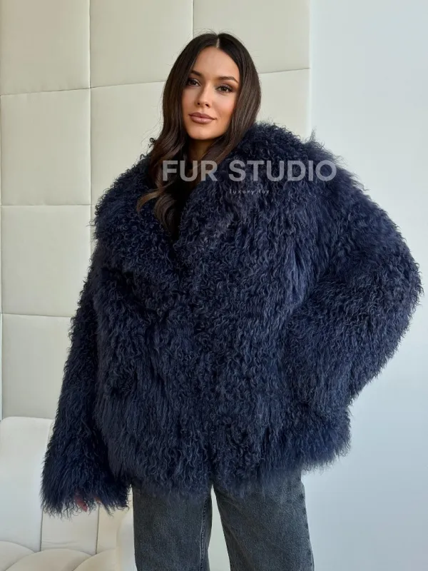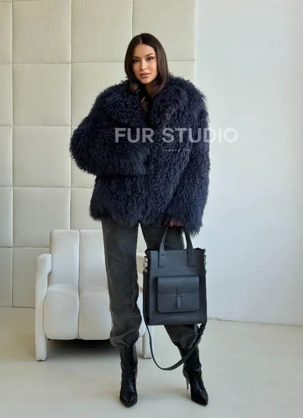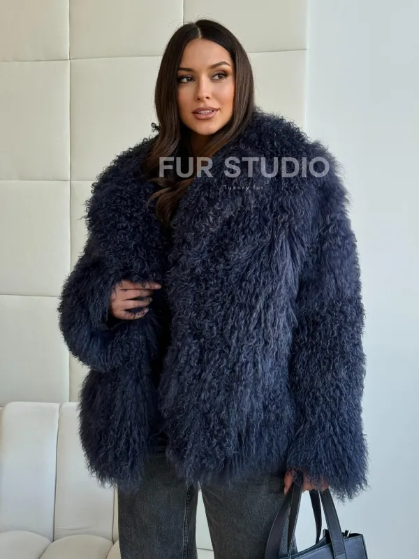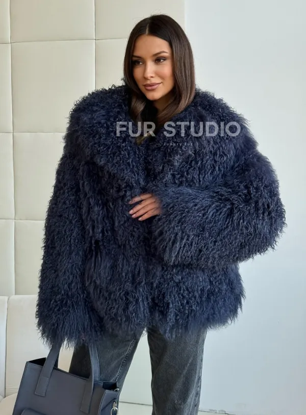Шуба из ламы - цвет джинс 102516