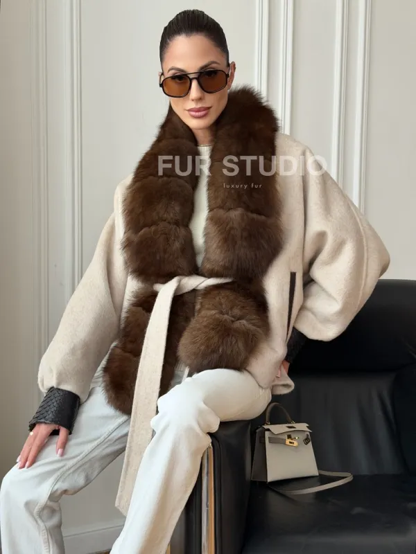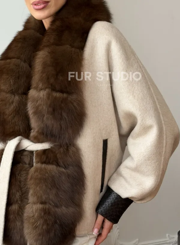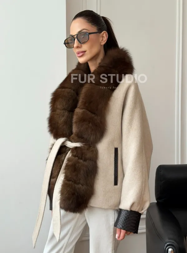 Женское шерстяное полупальто с мехом 102710
